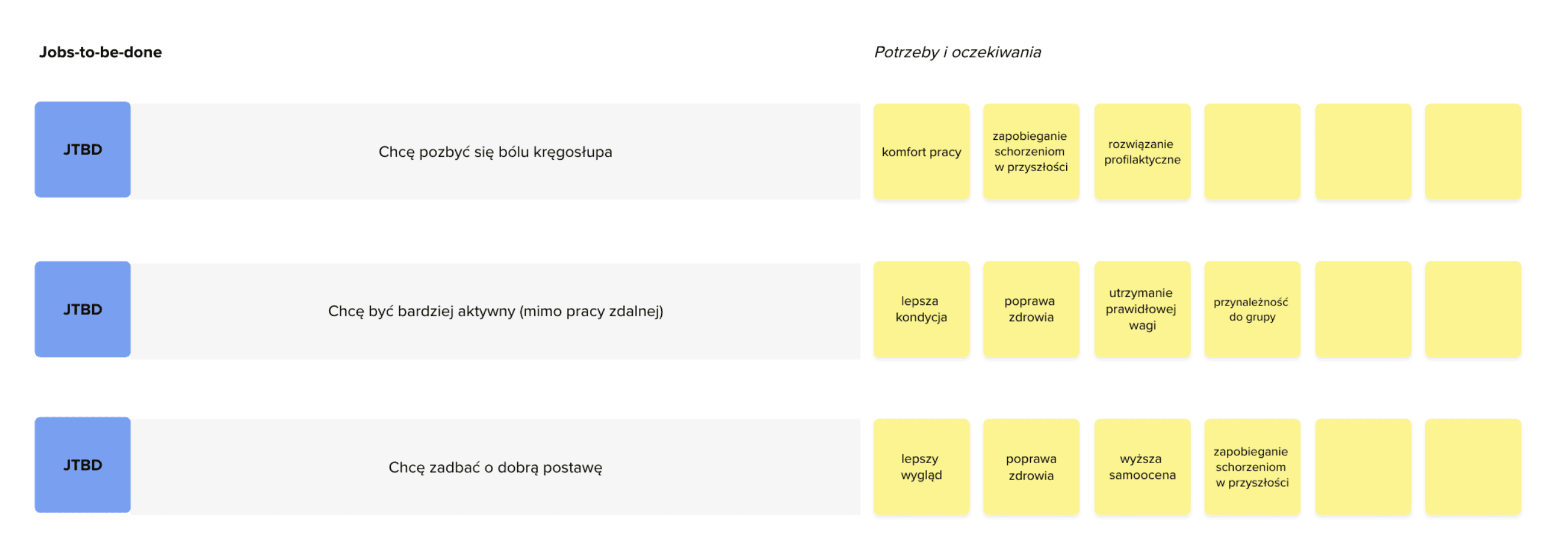 Przeanalizowaliśmy różnorodne potrzeby użytkowników i zdefiniowaliśmy główne “prace do wykonania”:
