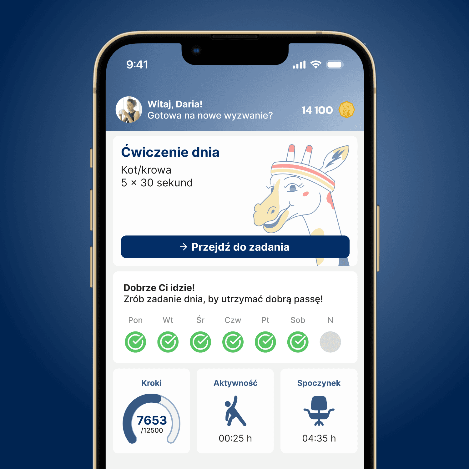 Zaczęliśmy od mapowania potrzeb i priorytetyzacji funkcji. Najważniejsze: zadanie dnia, krokomierz, nagrody i społeczność. Testowaliśmy różne wersje, aż trafiliśmy na idealny przepis na sukces.